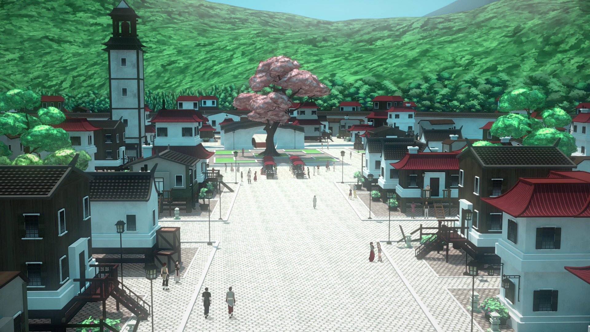When Ren's father appears, the memory gets shaky again as young Nora takes advantage of the distraction to dart away with her loaf of bread, which she starts to eat crouched beneath one of Kuroyuri's stilt houses